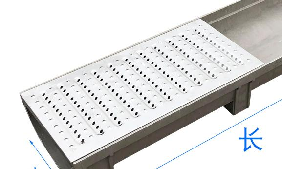 不锈钢盖板也可以说成是缝隙式盖板,缝隙分为侧缝,中缝,侧缝有单缝,双缝,中缝有单缝双缝,三缝,还有双侧缝。水都是从缝隙排出,一些杂物也不会从缝隙流入沟体。